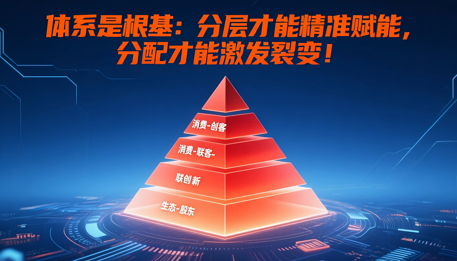 · 股东(资本)层: 体系的顶层支持者。通过真金白银投资(10-100万)成为合伙人,获得公司原始股、溢价,共享体系长期发展的资本红利。核心价值是资本助力与战略共赢。
